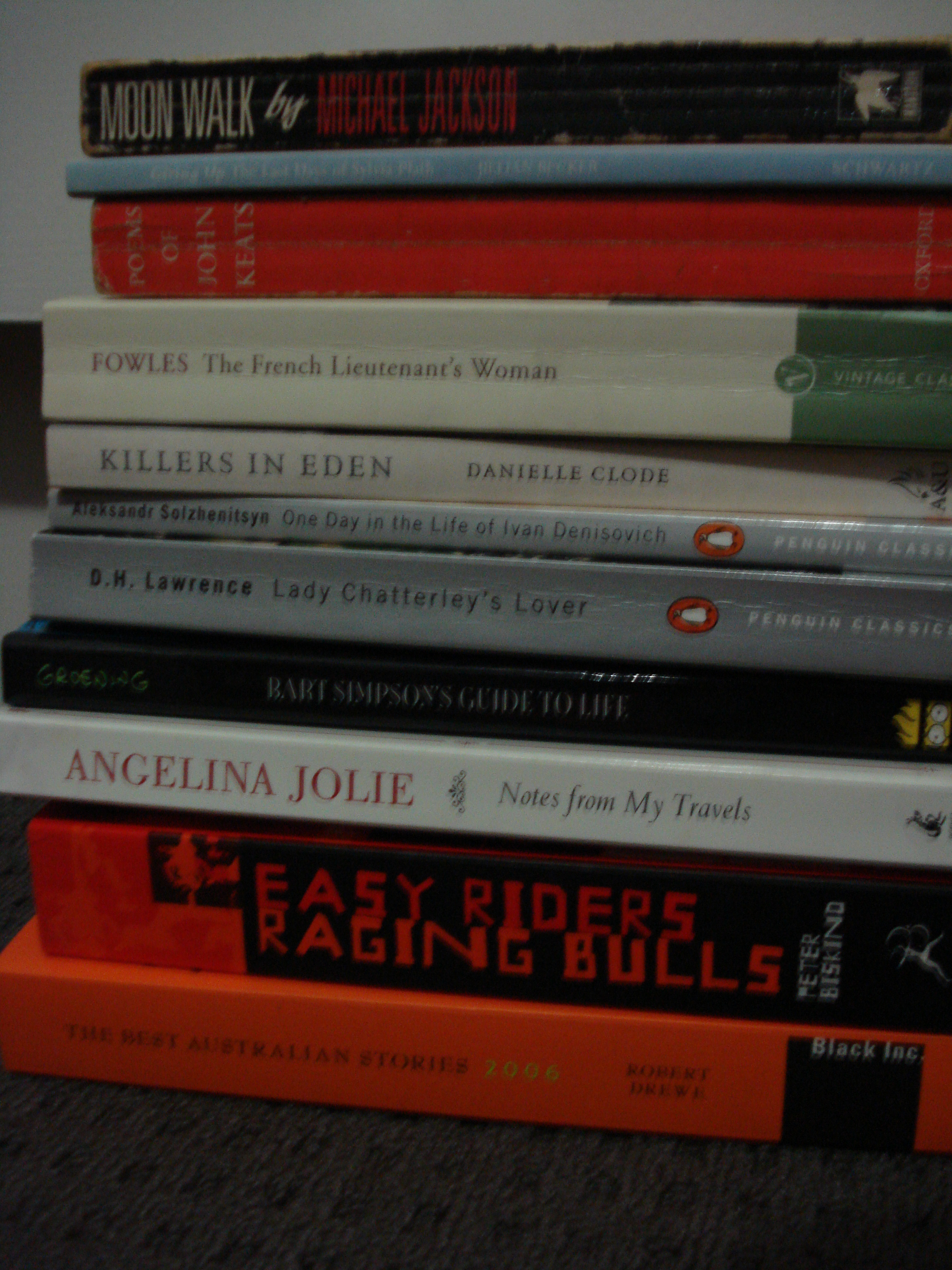 Recycled Envelope – these are all MY books, and ones I’ve read, too. They’ve been living in my home town as they are obviously expensive to ship. I’ve been in Melbourne for a year-and-a-half with a lot of new books, and a small stack of favourites. Now all my books are together again!